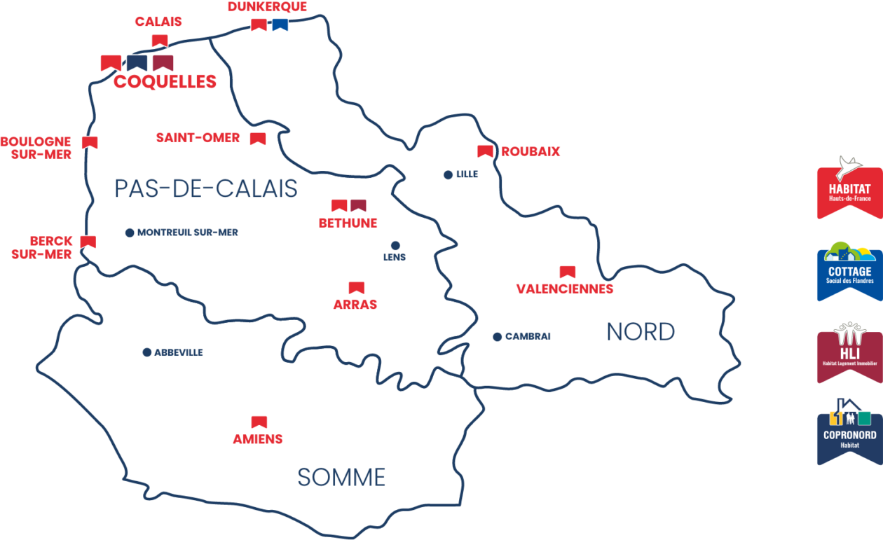 Le Groupe est présent dans toute la région Hauts-de-France grâce à ses agences implantées à Arras, Amiens, Berck-sur-Mer, Béthune, Boulogne-sur-Mer, Calais, Dunkerque, Roubaix, Saint-Omer et Valenciennes.